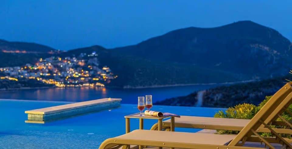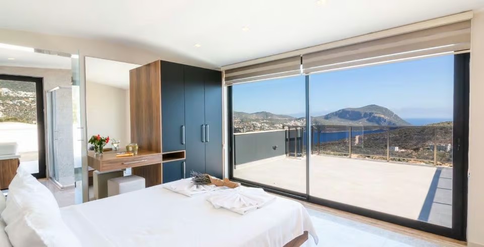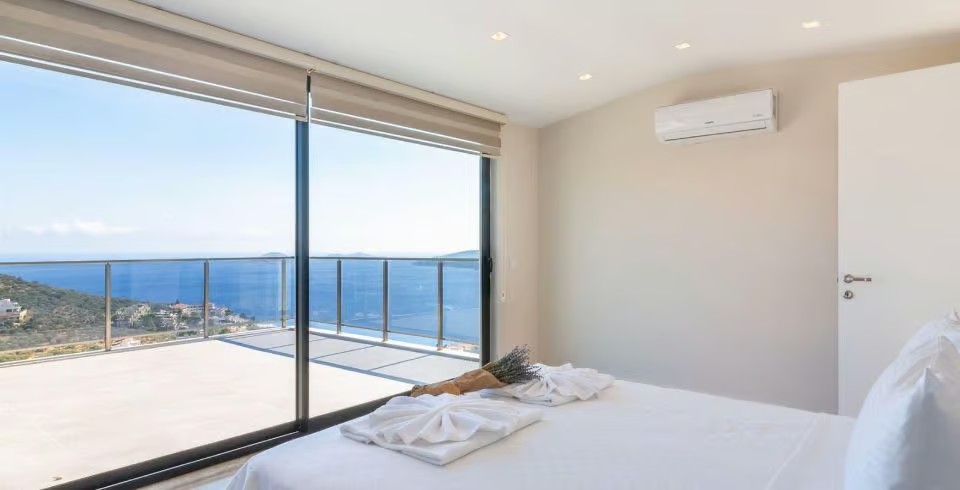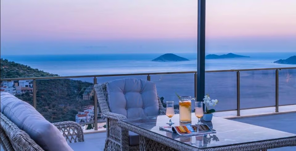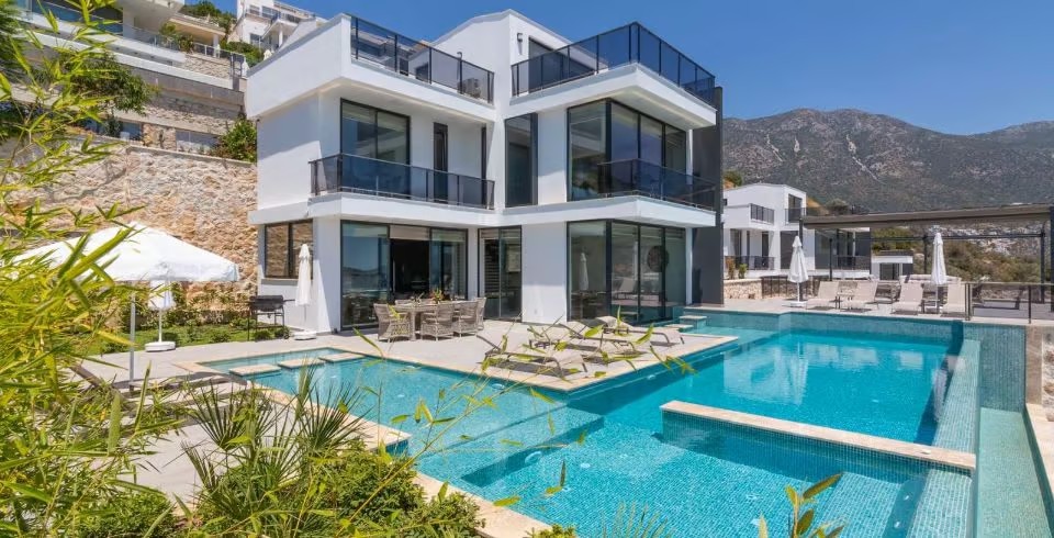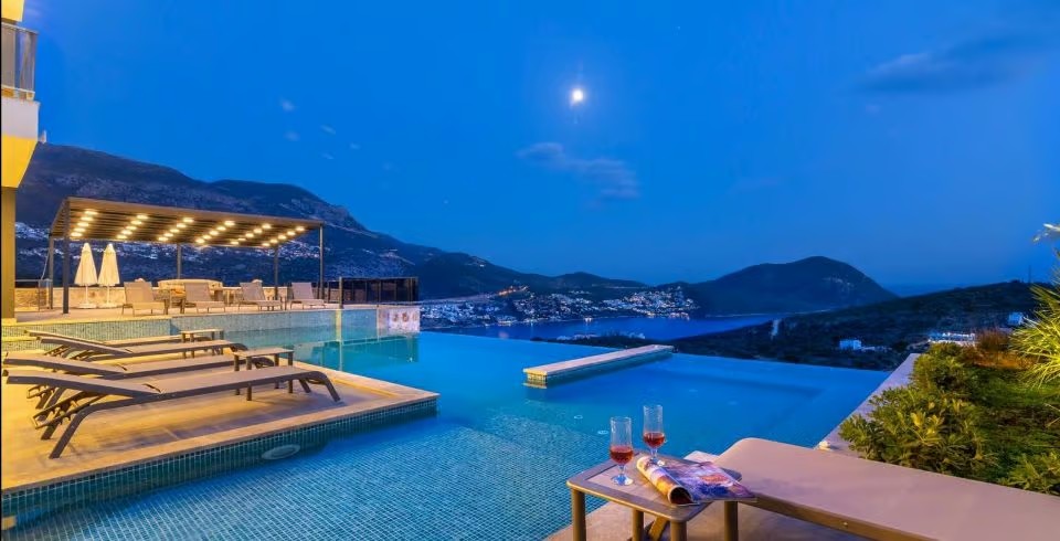Kalkan Kalamar bölgesinde 5 yatak odalı 10 kişilik özel yüzme havuzlu kiralık yazlık villadır. Villamız deniz manzaralı olup Kalkan ve adalar manzarasına sahiptir. 2019 yılında yapımı tamamlanmış lüks kiralık villa seçeneklerimizdendir. Havuz ve havuz terası deniz manzaralı iç dekorasyonu oldukça kaliteli eşyalar ile donatılmıştır. Siz değerli misafirlerimizin tüm ihtiyaçları göz önüne alınarak yapılan villamızda tatil boyunca sizi mutlu edecek tüm detaylar düşünülmüştür.