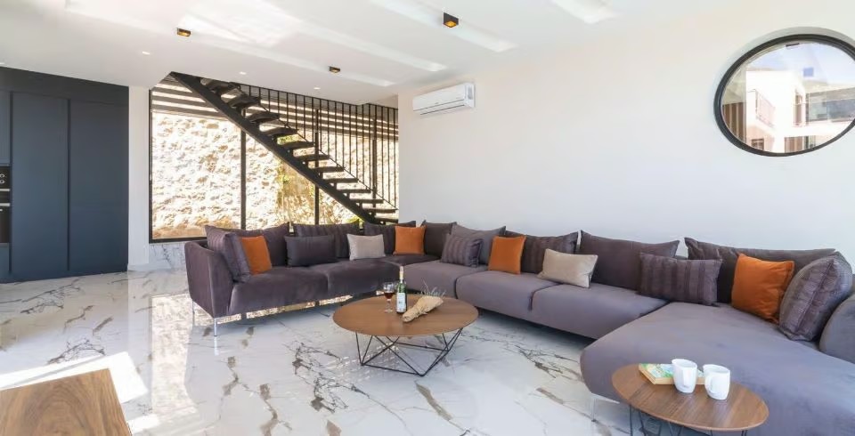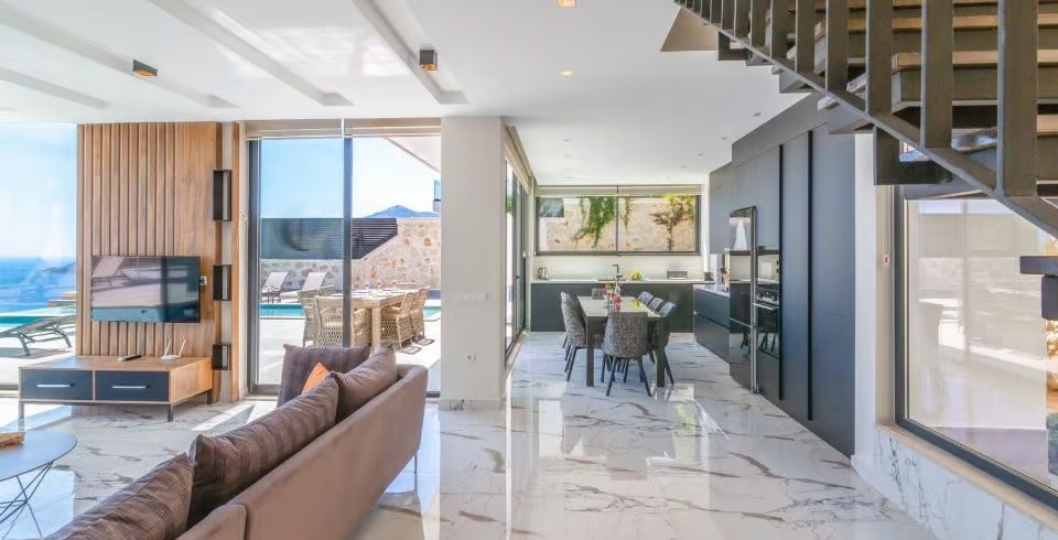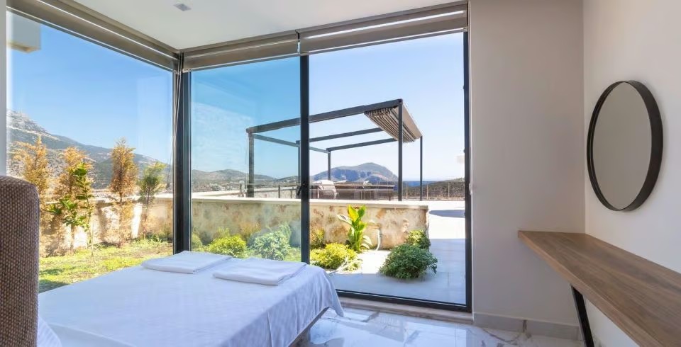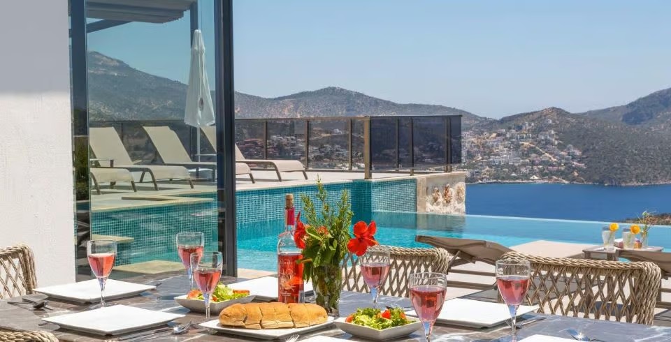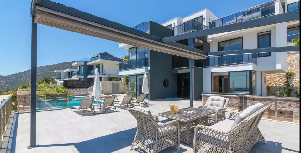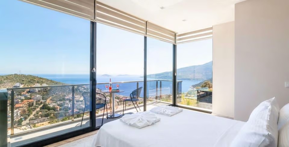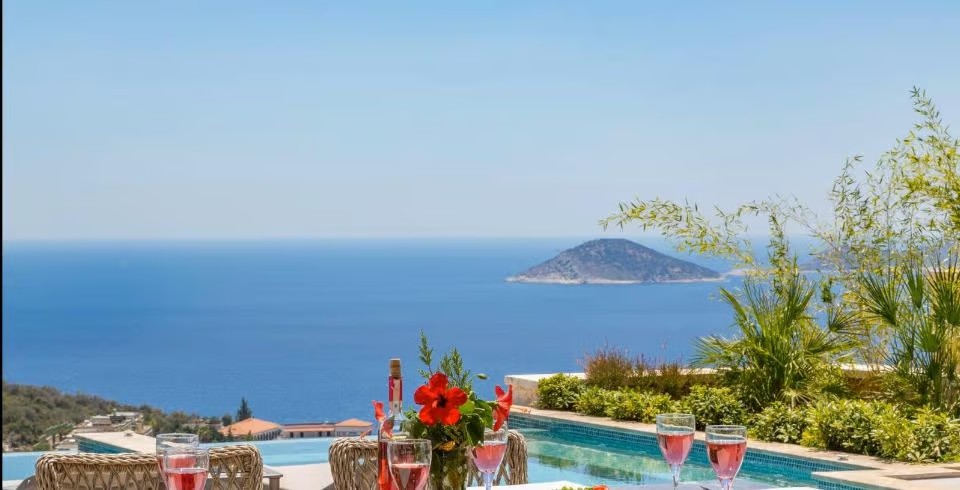 Kalkan Kalamar bölgesinde 5 yatak odalı 10 kişilik özel yüzme havuzlu kiralık yazlık villadır. Villamız deniz manzaralı olup Kalkan ve adalar manzarasına sahiptir. 2019 yılında yapımı tamamlanmış lüks kiralık villa seçeneklerimizdendir. Havuz ve havuz terası deniz manzaralı iç dekorasyonu oldukça kaliteli eşyalar ile donatılmıştır. Siz değerli misafirlerimizin tüm ihtiyaçları göz önüne alınarak yapılan villamızda tatil boyunca sizi mutlu edecek tüm detaylar düşünülmüştür.