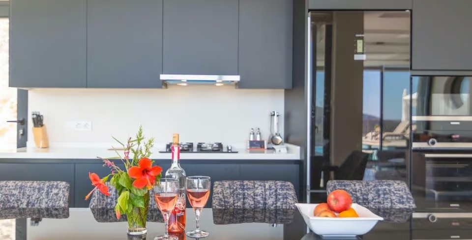 Mutfak : Amerikan mutfağında (Havuz katı) buzdolabı, çamaşır makinesi, bulaşık makinesi, fırın, 4 lü ocak, mikrodalga fırın, elektrikli su ısıtıcısı (kettle), ekmek kızartma makinesi, su sebili, yemek takımı, mutfak araç ve gereçleri bulunmaktadır.