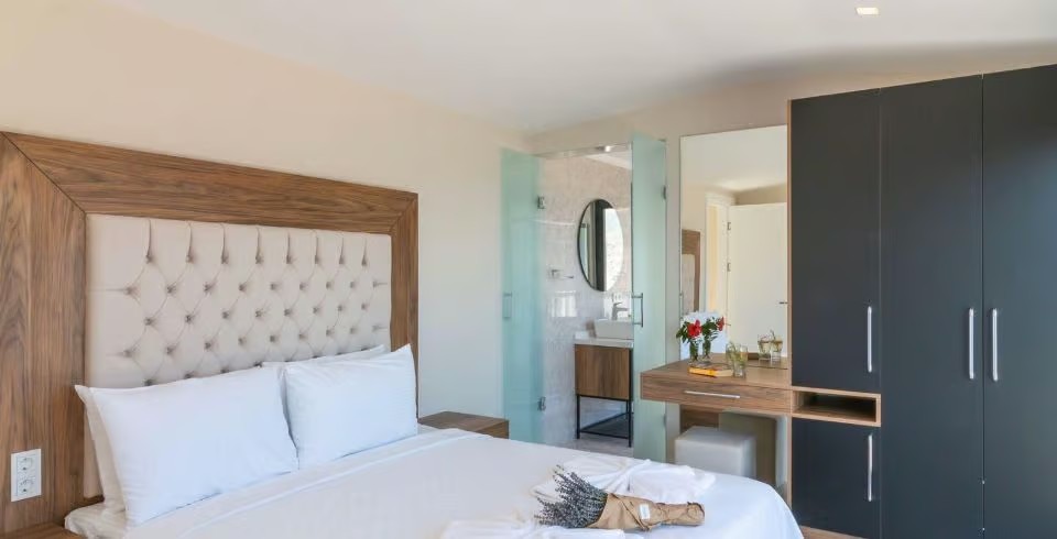 Yatak Odası 5 : Çift kişilik yatak, klima, komodin, elbise dolabı, makyaj masası, balkon, banyo ve tuvalet bulunmaktadır.