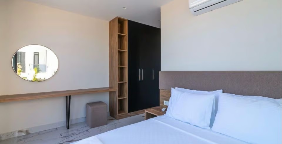 Yatak Odası 2 : 2 adet tek kişilik yatak, klima, komodin, elbise dolabı, makyaj masası, banyo ve tuvalet bulunmaktadır.
