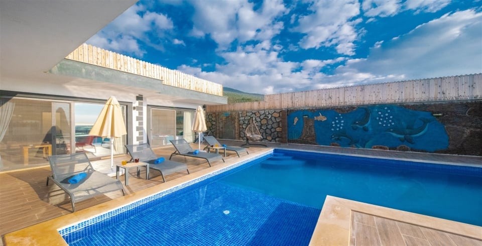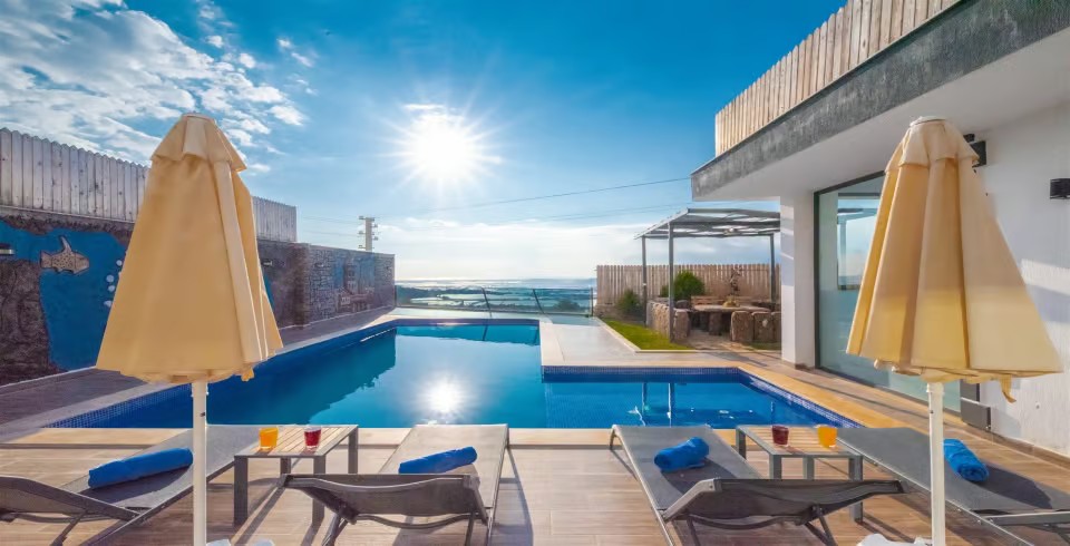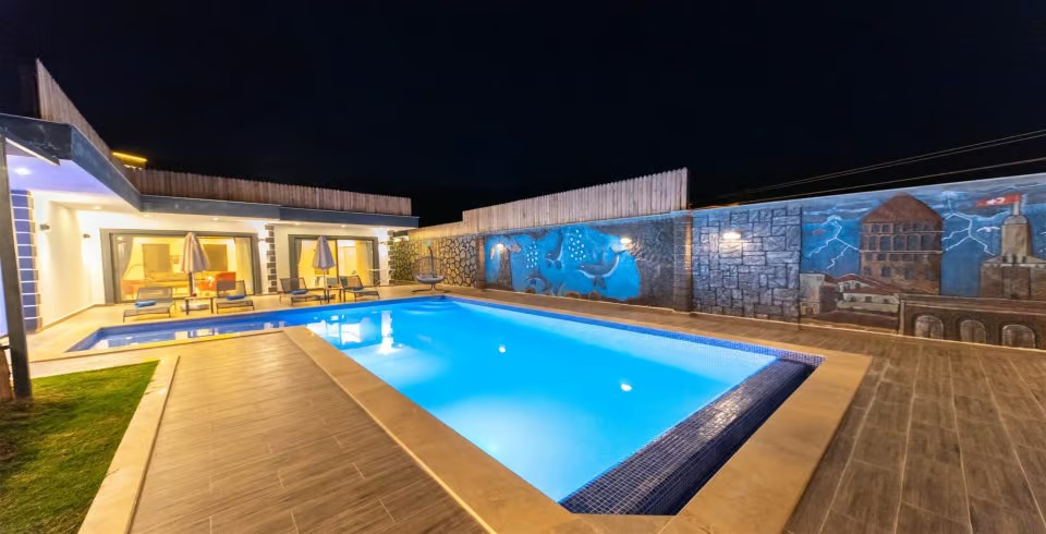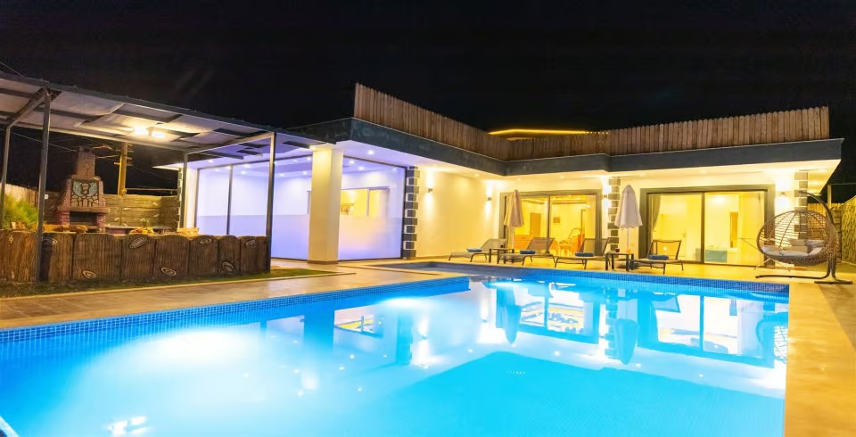 Havuz ve Bahçe : Villamız korunaklı olduğundan dışarıdan kesinlikle görünmemektedir. 1.55 metre sığ özel yüzme havuzunun içinde şezlong bulunan bahçemizde ekstra şezlonglar, şemsiye, yemek masası bulunmaktadır. Hemen yanında barkekü alanı ve oturma gurubu yer almaktadır.