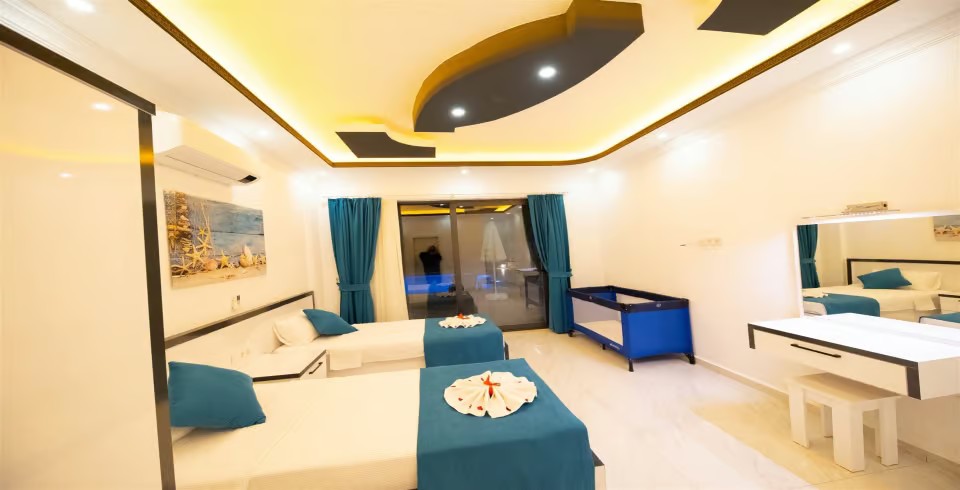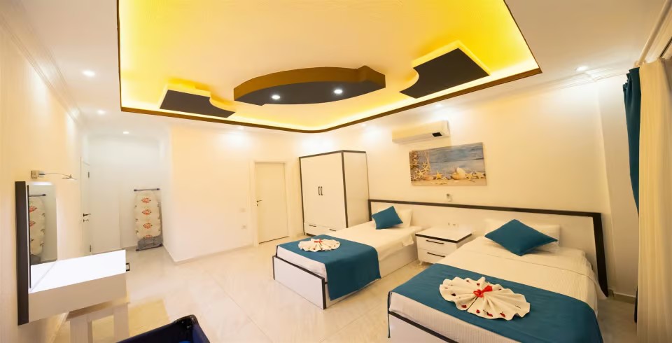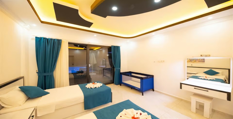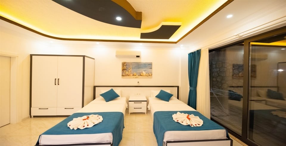 2. Yatak Odası : 2 adet tek kişilik yatak, komodin, klima, elbise dolabı, makyaj masası, banyo ve lavabo bulunmaktadır.