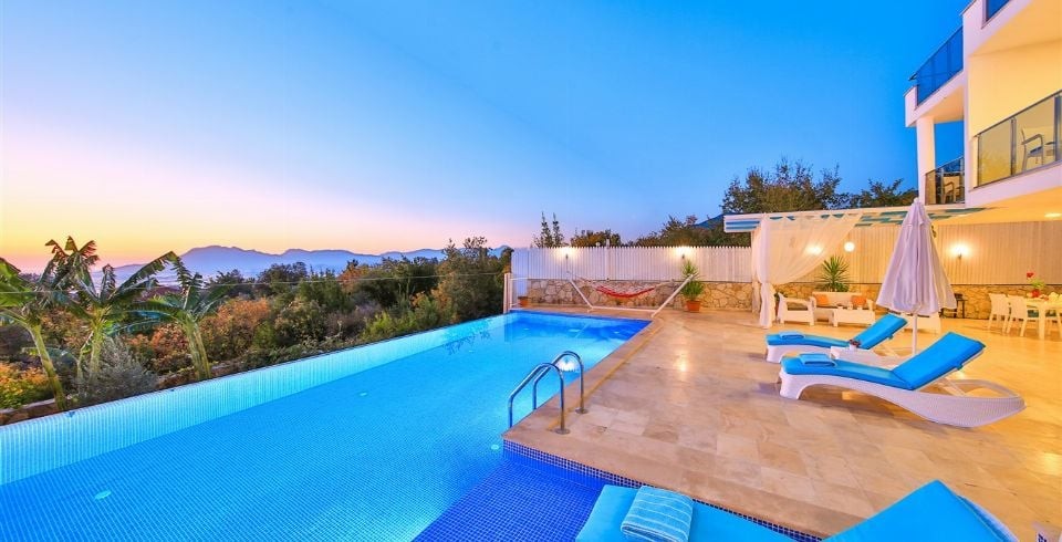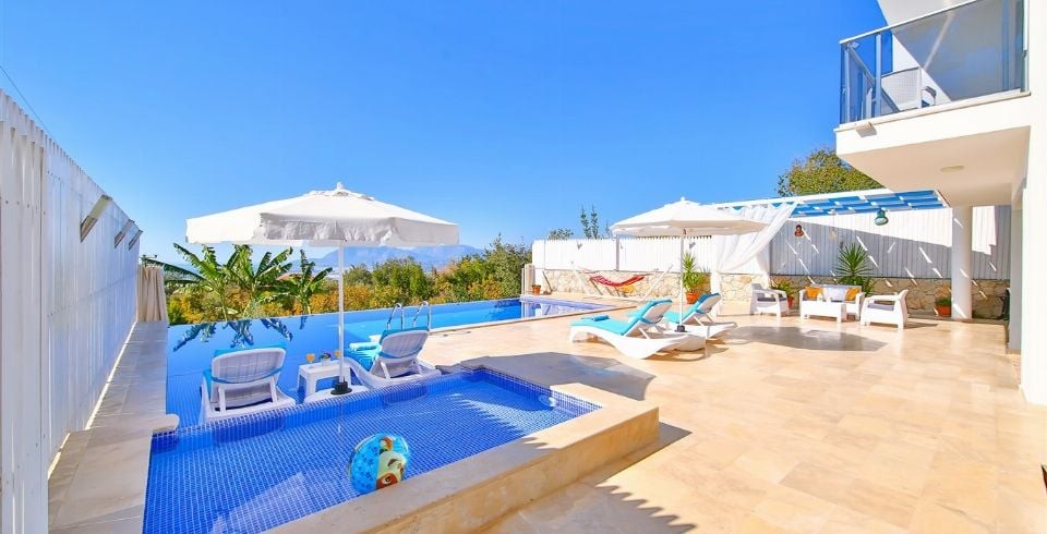 Kalkan Üzümlü mahallesinde bulunan muhafazakar Korunaklı Havuzlu villamızın yapımı 2016 yılı içerisinde tamamlanmış olup muhteşem doğa ve Panoramik deniz manzarasına sahiptir. Korunaklı havuzlu villamızda kapalı aileler için son derece uygun olup dışarıdan gözükmemektedir. Villamızda tüm ayrıntılar düşünülmüş olup tatil boyunca bir gönlünüzce bir tatil değerli misafirlerimizi beklemektedir. Kiralık villa Şelale'nin Havuz ve bahçe katı dışarıdan görünmemesi muhafazakar aileler için ideal bir tercihtir. Villamızın Havuz terasında çocuk havuzu ve sığ havuz bulunmakta olup ayrıca çocuklar için park vardır. Bu arada villamıza saunada eklenmiştir.