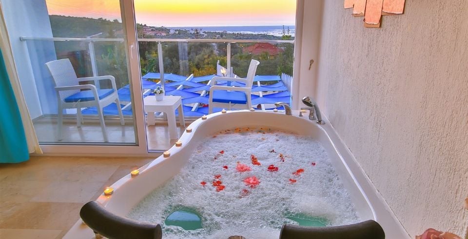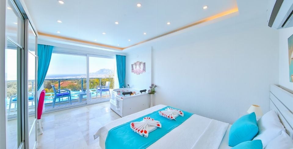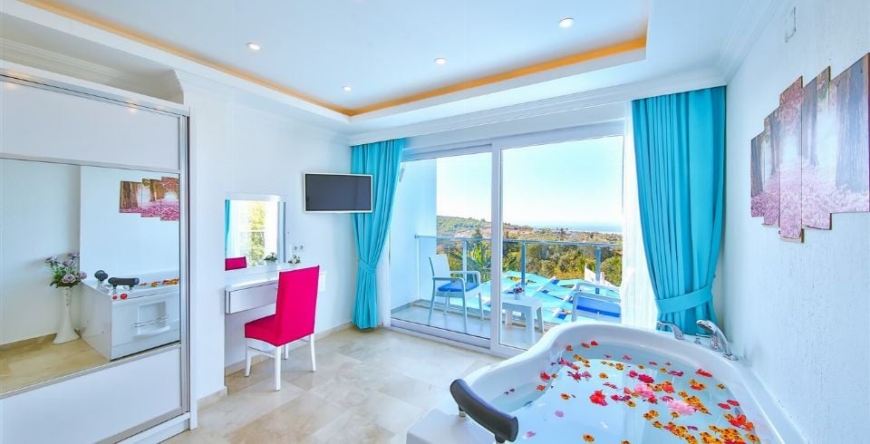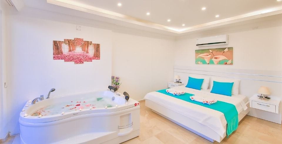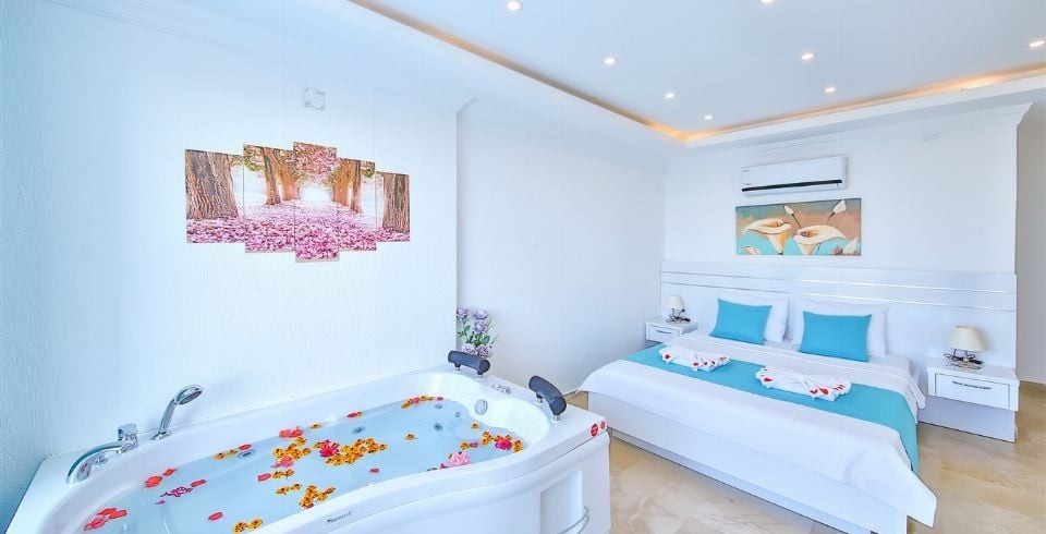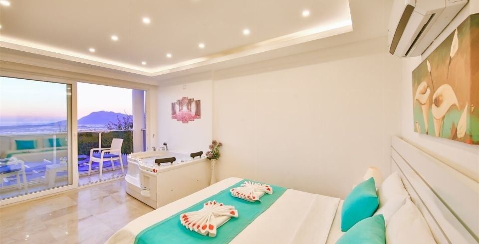 1. Yatak Odası : 1 adet çift kişilik yatak, klima, komodin, elbise dolabı, makyaj masası, berjer, balkon, banyo ve tuvalet, jakuzi bulunmaktadır. Oda deniz ve doğa manzaralıdır.