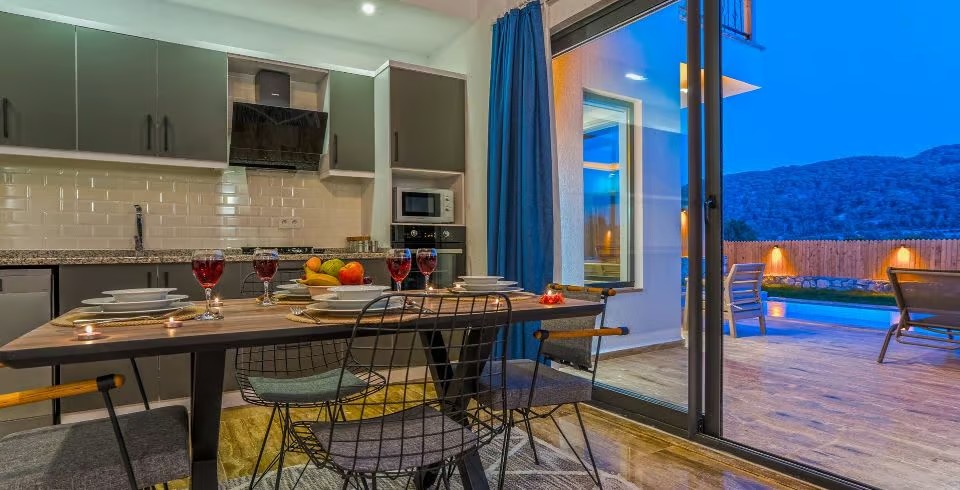 Mutfak: Villamızın mutfağında buzdolabı bulaşık makinası, çamaşır makinası, 4'lü ocak, ketıl, mikro dalga fırın, filtre kahve makinası 4 kişilik yemek takımı bulunmaktadır.