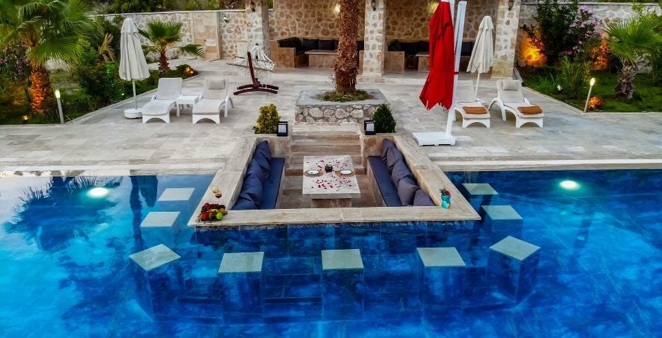Önemli Bilgi: Isıtma Havuzlu villalarımızda iç havuz ve kapalı havuz sıcaklıklarımız insan sağlığı ve hijyen koşulları sebebi ile tüm villalarımızda 27 derece civarında bulunmakta olup extra durumları lütfen yetkililer ile paylaşınız.
