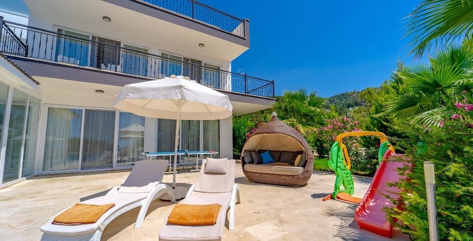Kalkan İslamların uç noktasında bulunan Villamız Serenity muhteşem bir seyir terası özelliğine sahiptir. Kuş bakışı deniz ve adalar manzarasına sahip olan villamızın geniş havuzu ve bahçesi ile kalabalık aileler ve arkadaş grupları için son derece uygun tatil villasıdır. İki adet havuza, çocuk oyun parkına, ısıtmalı havuza sahip olan villamız siz değerli misafirlerimizi beklemektedir. Villamız muhafazakar aileler içinde uygun hale getirilmiştir.
