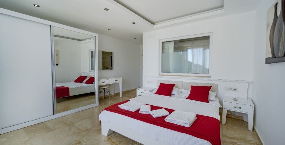 4. Yatak Odası : Çift kişilik yatak, klima, komodin, makyaj masası, elbise dolabı, banyo ve lavabo bulunmaktadır. Balkon bulunmaktadır.