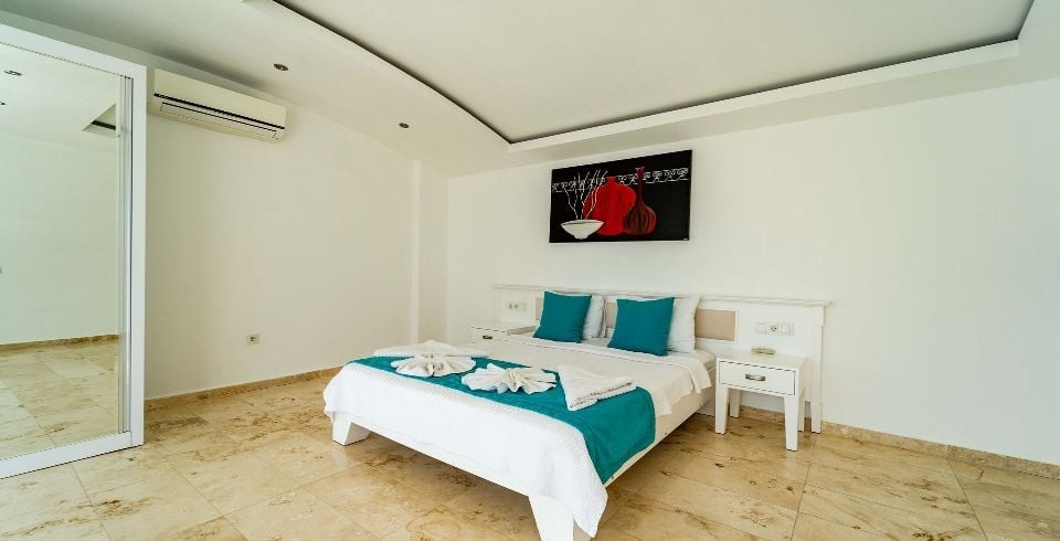 1. Yatak Odası : Çift kişilik yatak, klima, komodin, makyaj masası, elbise dolabı, banyo ve lavabo bulunmaktadır.