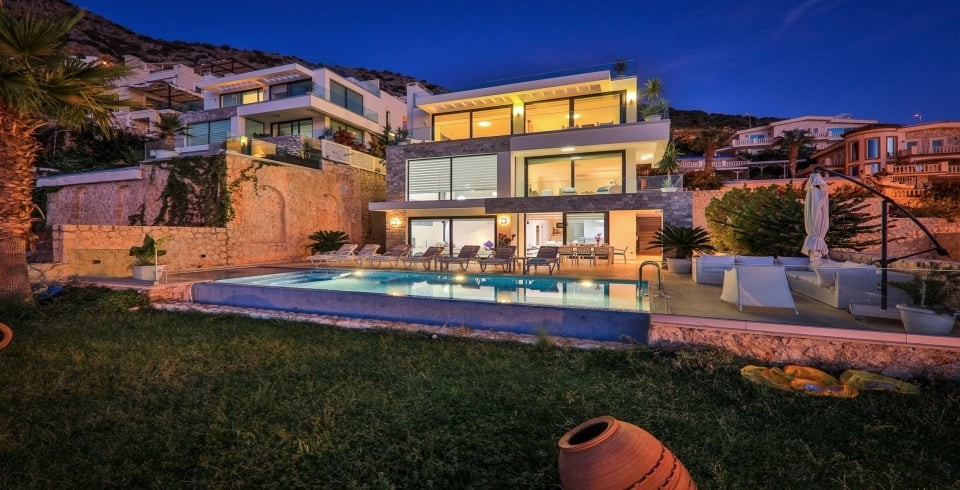 Villanın dış alanında ısıtmalı ya da standart olarak kullanılabilen sonsuzluk havuzu, jakuzili bölüm, çocuk havuzu ve geniş güneşlenme terası yer alır. Şezlonglar, gölgelikler, açık hava yemek alanı ve barbekü olanakları ile dekoratif oturma köşeleri teras boyunca yayılmıştır. Ayrıca terasta masa tenisi de misafirlerin eğlencesi için sunulmuştur.