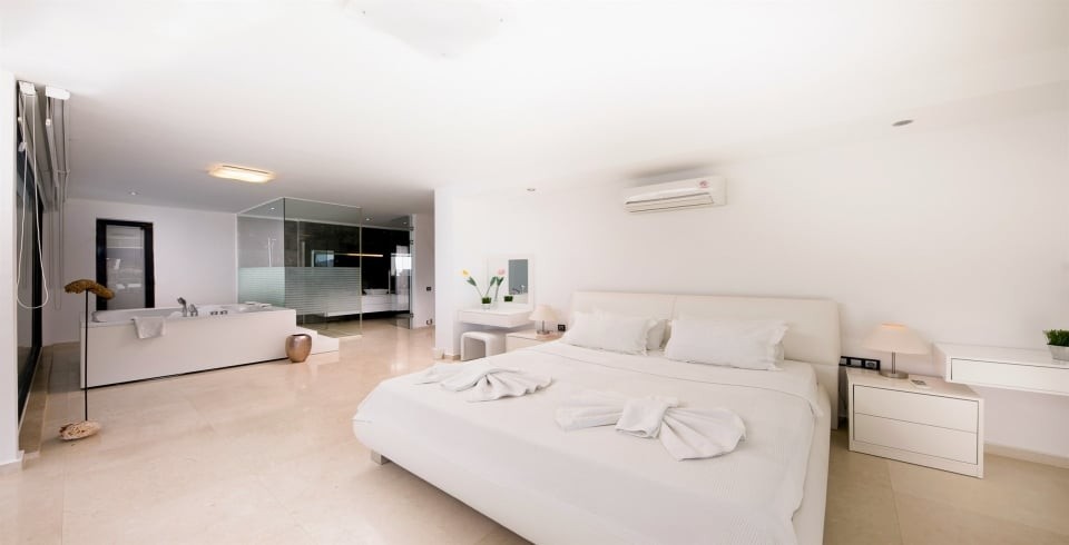 Yatak odalarından biri çift kişilik jakuzi banyo ile donatılmıştır. Diğer üç odada ise en-suite duş banyoları bulunmaktadır. Her odada klima, gardırop ve balkon ya da pencere ile manzara erişimi sağlanmıştır.
