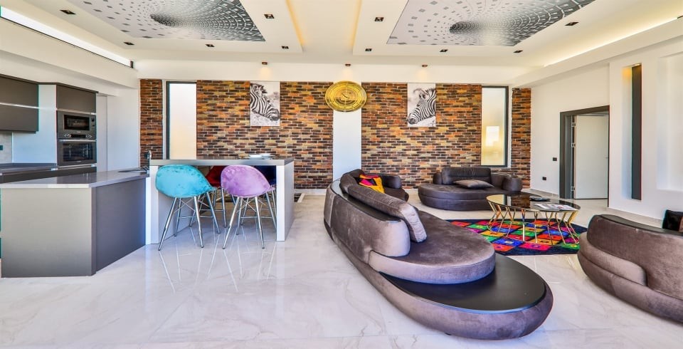Salon: Villa salonunda konforlu oturma grubu, klima, TV, internet, uydu alıcı, yemek masası, sehpa bulunmaktadır.