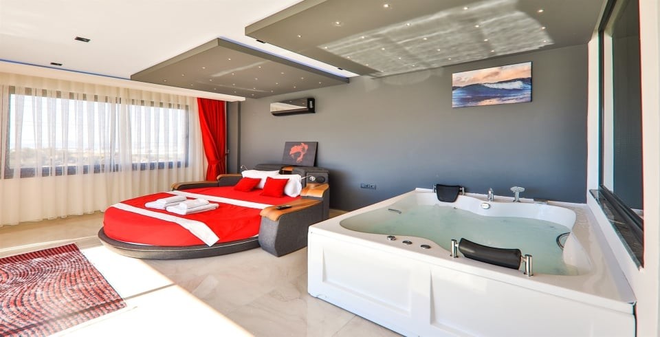 1: Yatak Odası: Çift kişilik yatak, klima, jakuzi, komodin, elbise dolabı, makyaj masası banyo ve tuvalet bulunmaktadır.