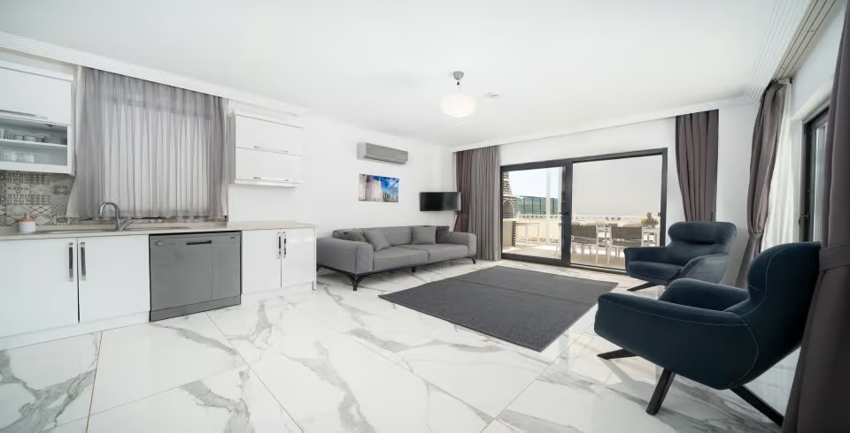 Villanın iç mekanı, 8 kişilik bir grubun tüm ihtiyaçları düşünülerek ferah ve konforlu bir anlayışla dekore edilmiştir. Geniş ve aydınlık salonda, tüm ailenin bir araya gelebileceği rahat bir oturma grubu ve televizyon bulunur. Bu alan, doğrudan villanın havuz terasına açılarak size ferah bir yaşam alanı sunar. Modern ve tam donanımlı mutfakta ise buzdolabı, fırın, bulaşık makinesi, ocak ve tatiliniz boyunca ihtiyacınız olabilecek tüm mutfak gereçleri mevcuttur. Aileniz için lezzetli yemekler hazırlayıp keyifli sofralar kurabilirsiniz.