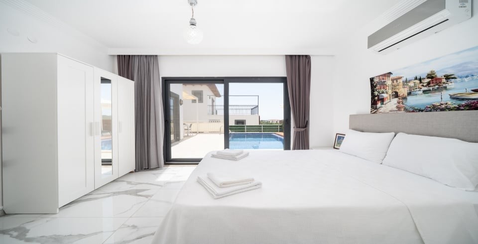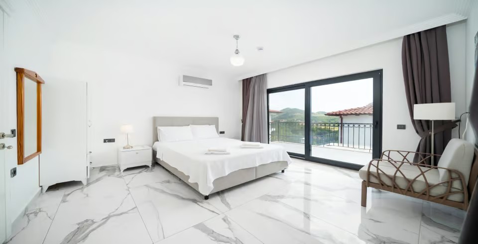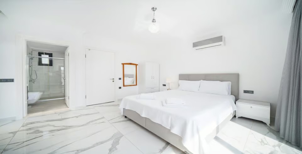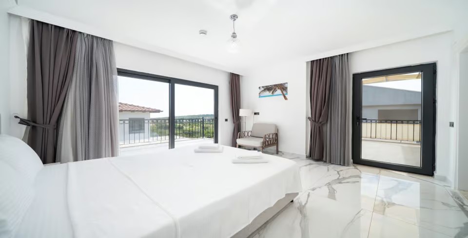 Villa Sevinç, 8 misafirini en rahat şekilde ağırlamak üzere tasarlanmış 4 adet konforlu yatak odasına sahiptir. Odaların tamamına yakını özel banyolara sahip olup, gruptaki herkese kişisel bir konfor alanı tanır. Farklı aile ve grup yapılarına uyum sağlamak amacıyla odalarda hem çift kişilik hem de tek kişilik yatak konfigürasyonları kullanılmıştır. Klimalı ve ferah odalarda, doğa içinde geçirdiğiniz harika bir günün ardından dinlendirici bir uyku çekebilirsiniz.
