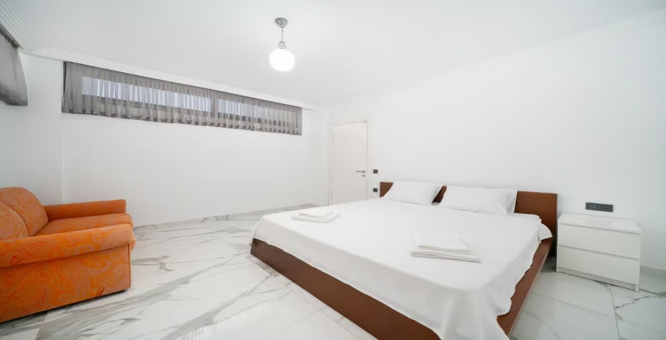 1. Yatak Odası : 1 Adet çift kişilik yatak, komodin, makyaj masası, klima, banyo ve tuvalet bulunmaktadır.