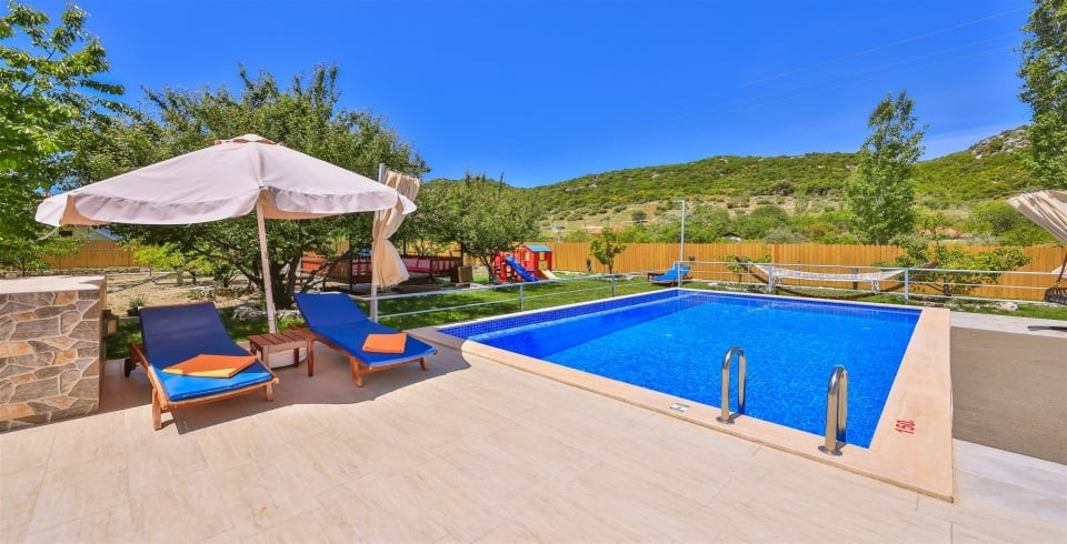 Villa seyret Kaş Gökçeören bölgesinde doğa manzarasına sahip 4 Yatak Odalı 8 Kişilik Özel Yüzme havuzlu muhafazakar olup yeni ve modern bir villamızdır. Geniş aile ve arkadaş gurupları için çocuklu aileler için geniş havuz terasında ve geniş bahçe alanında sessiz ve sakin rahat bir tatil arzulayan misafirlerimiz için bu villa seçeneğimiz son derece yerinde bir karar olacaktır. TV sisteminde netfilix ile ailenizle veya sevgilinizle filim izlemenin keyfini çıkarabilirsiniz. Villamızın salon  bölümünden  havuz terasına çıkış bulunmaktadır.