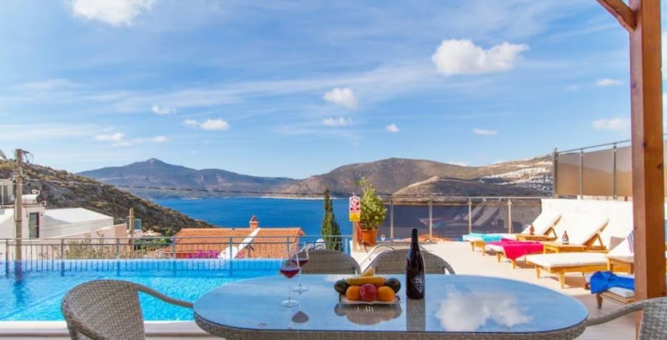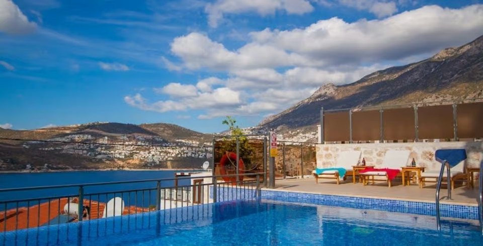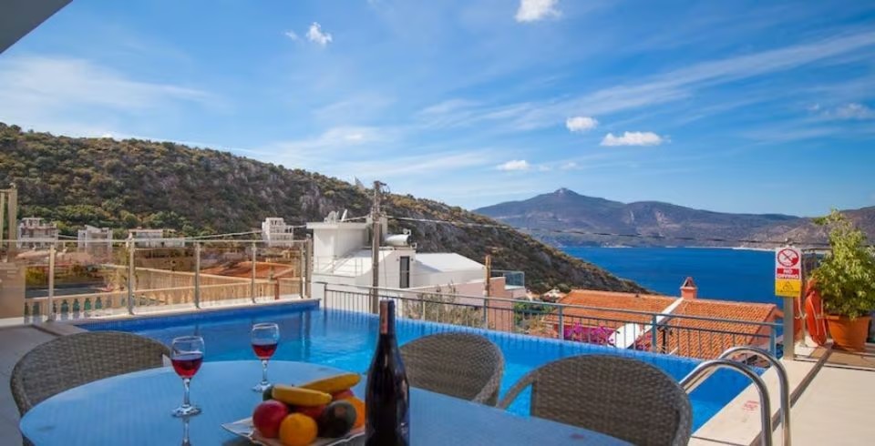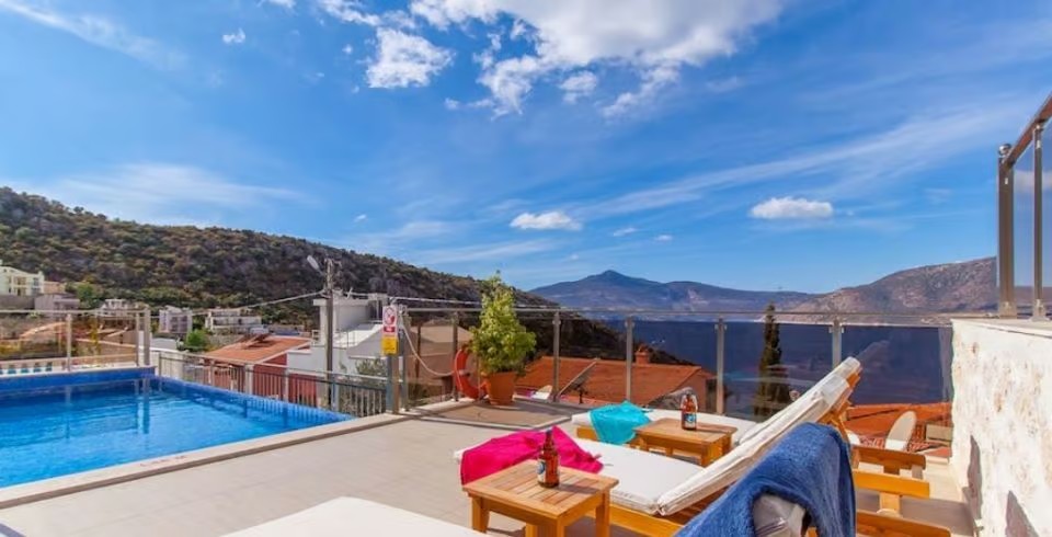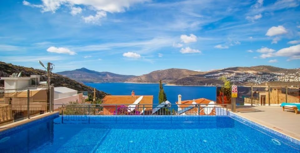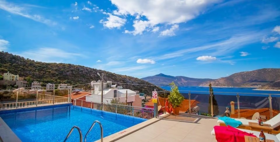 Kalkan kışla mevkisin de bulunan deniz ve kalkan manzarasına sahip 4 yatak odalı 8 kişilik kiralık yazlık villamız denize ve marketlere yürüme mesafesinde bulunmaktadır. Muhteşem mimarisi ve kullanılan eşyaların kalitesi ile göz kamaştıran villamız sezen sizi ve sevdiklerinizi unutulmaz bir tatil geçirmenizi sağlamaktadır. Havuz ve Havuz terasının harika manzarasında akşam üstü gün batımını izlerken kahvenizi yudumlamanız eşsiz bir keyif verecektir.