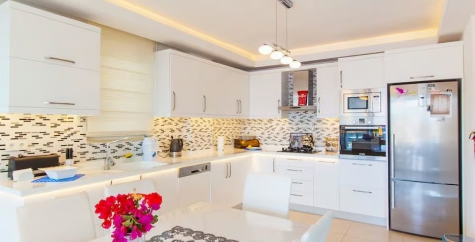 Mutfak : Amerikan açık mutfağımızda ankastre ocak, fırın, mikro dalga fırın, kettle, bulaşık makinası, çamaşır makinası, buzdolabı, yemek masası ve tüm mutfak araç gerekleri villamızın mutfağında mevcuttur.