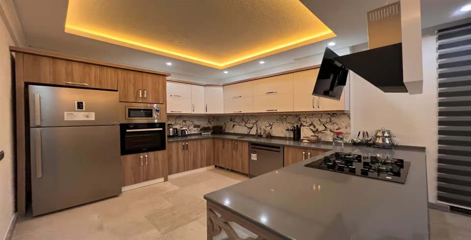 Mutfak : Buzdolabı, Bulaşık makinesi, Çamaşır makinesi, Fırın, 4’lü Ocak (ankastre), Mikrodalga fırın, Elektrikli su ısıtıcı, Tost Makinası, Ekmek Kızartma Makinası, 6 kişilik yemek takımı, Tava, Tencereler,6 kişilik yemek masası, Çatal bıçak vb. Mama sandalyesi