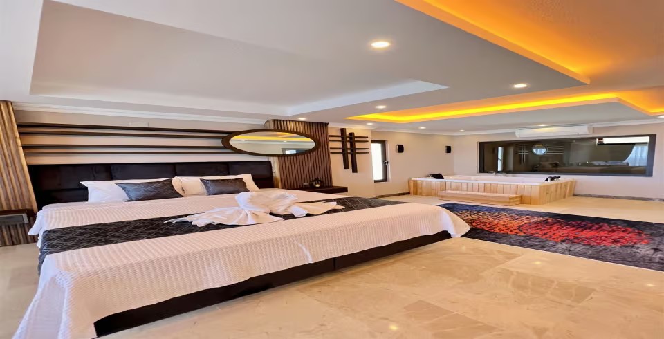 1. Yatak Odası : 1 adet çift kişilik yatak, klima, komodin, makyaj masası, elbise dolabı, jakuzi, banyo ve lavabo bulunmaktadır.