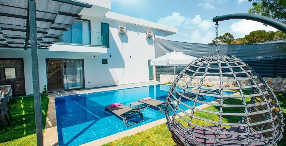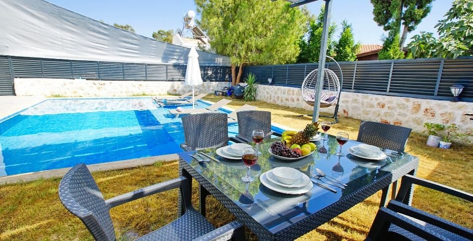 Havuz ve Bahçe : Villamızın bahçesi oldukça geniştir ve çocuklu ailelerimiz için oldukça uygundur. Villamız korunaklı olduğundan dışarıdan kesinlikle görünmemektedir. özel yüzme havuzunun içinde şezlong bulunan bahçemizde ekstra şezlonglar, şemsiye, yemek masası, salıncak bulunmaktadır.