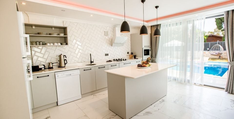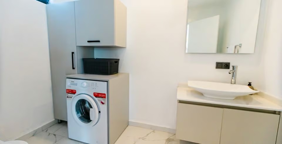 Mutfak : Modern Amerika mutfağımızda 4 kişilik yemek masası, buzdolabı, çamaşır makinesi, mikrodalga fırın, 4’lü ocak, tost makinesi, elektrikli su ısıtıcısı, çatal-bıçak takımı, tencere-tava takımı, bulaşık makinesi bulunmaktadır.