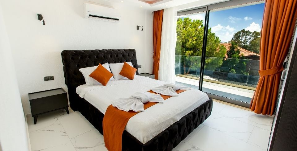 2. Yatak Odası: 1 adet çift kişilik yatak, komodin, klima, makyaj masası, banyo ve lavabo bulunmaktadır.