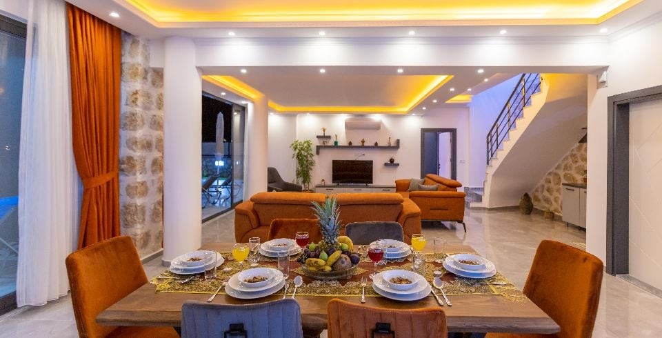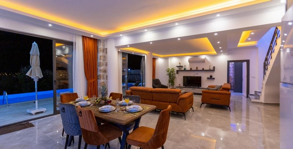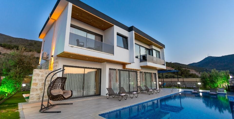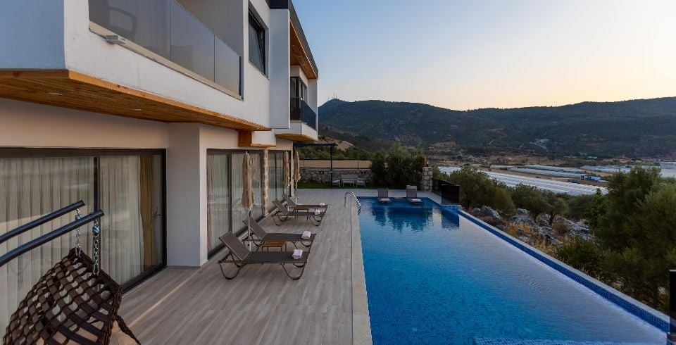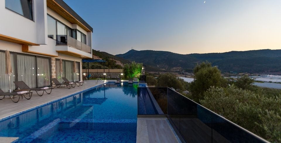 Kalkan Yeşilköy bölgesinde bulunan 3 yatak odalı 7 kişilik huzurlu sakin bir bölgede konumlanmış villamız doğa manzarasına sahiptir.  Herkese ve her yaşa hitap eden villamızın havuz kısmında perdeleme sistemi bulunmaktadır böylelikle  villamız korunaklı havuza sahiptir. Ayrıca villamızda keyifli vakit geçirebileceğiniz masa tenisi, oyun parkı, salıncak bulunmaktadır. Lüks bir iç dizayna sahip olan villamız hem balayı çiftlerimiz, hem de çekirdek ailelerimiz için uygun bir seçenektir.