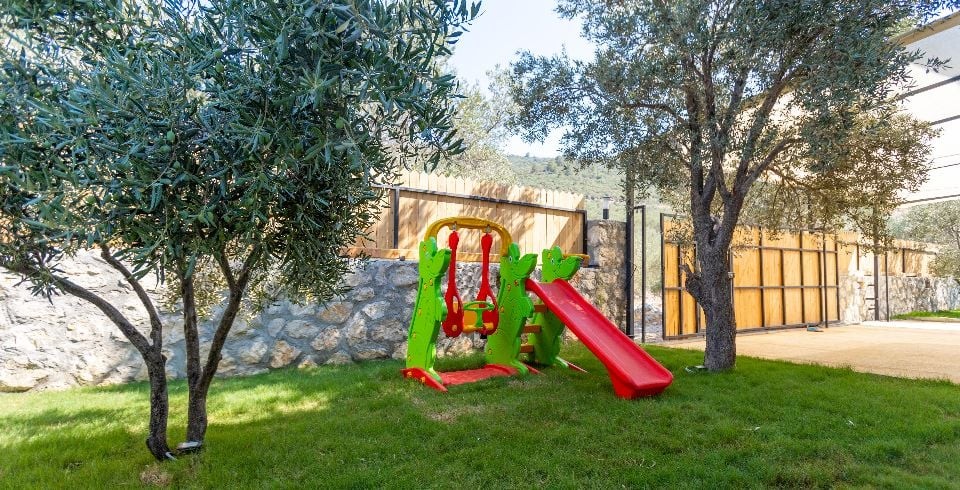 Bahçe : Bahçe içerisinde özel yüzme havuzu, şezlong,  yemek masası, masa tenisi, oyun parkı, salıncak  barbekü, güneş şemsiyesi bulunmaktadır