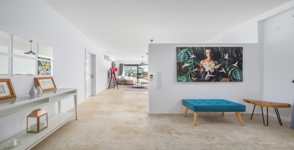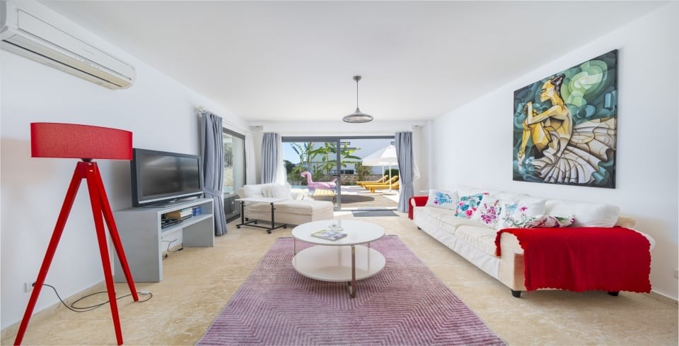 Salon :  Oturma grubu, televizyon, klima, sehpa, internet ve havuz terasına çıkış bulunmaktadır.