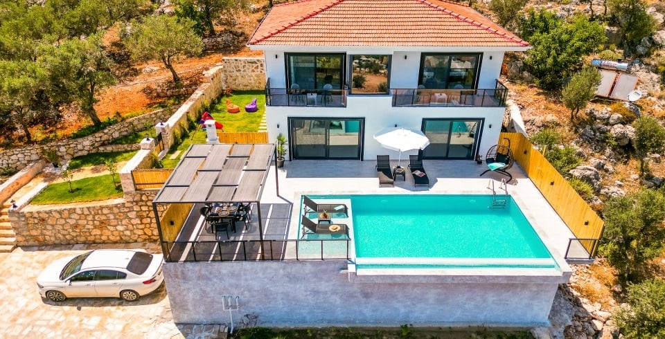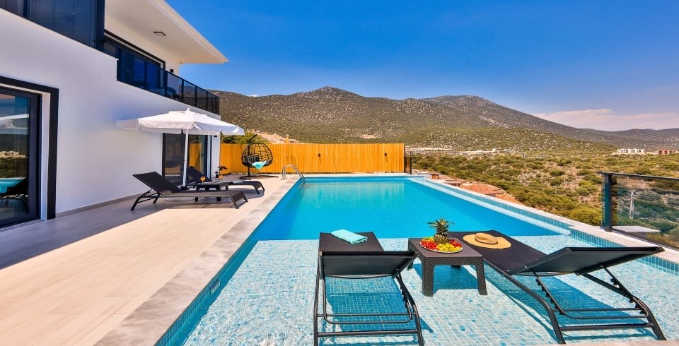 Villa Simurg, Kaş’ın eşsiz güzellikteki Sısla mevkiinde yer alan, modern mimarisi ve üstün konfor özellikleriyle ön plana çıkan villamızdır, 3 yatak odası ve 6 kişilik konaklama kapasitesi sunuyor. Villamızda iki adet çift kişilik yatak odası ve bir adet iki tek kişilik yataklı oda bulunmaktadır. Özellikle bir çift kişilik yatak odası, deniz manzaralı özel jakuzisi ile konuklarına benzersiz bir dinlenme deneyimi sunmaktadır. Havuz terası, Akdeniz’in büyüleyici deniz manzarasına tamamen hakimdir ve misafirler için barbekü, salıncak ve şezlonglarla keyifli vakit geçirme alanları yaratılmıştır. Muhafazakar ailelere uygun olarak tasarlanan villamızda, dışarıdan görünmeyen havuz ve teras alanları bulunmaktadır. Bu villa, hem sakin bir tatil arayan hem de Akdeniz’in doğal güzelliklerini doyasıya yaşamak isteyen misafirler için ideal bir tercih. Kaş merkeze kısa mesafede (12km) yer alan konumu sayesinde hem huzur hem de kolay ulaşım avantajını bir arada sunuyor. Kaş’ın keyfini çıkarırken, bu özel villada unutulmaz bir tatil deneyimi sizi bekliyor!
