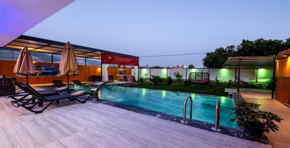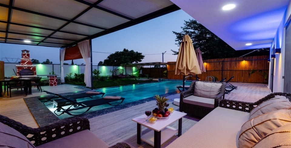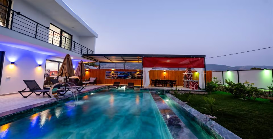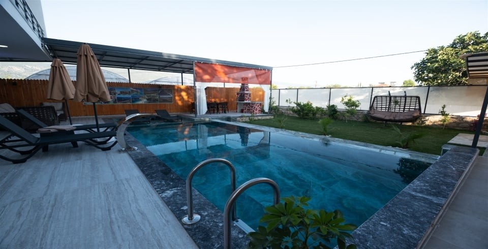 Havuz ve Bahçe : Özel yüzme havuzu bulunan villamızın havuz terasında şemsiye, şezlong, barbekü, pergola, oturma alanı, yemek masası ve sandalyeler bulunmaktadır.
