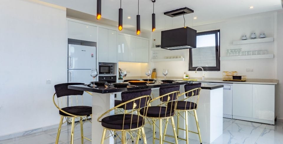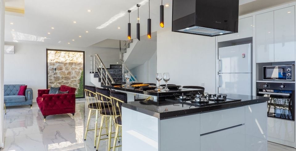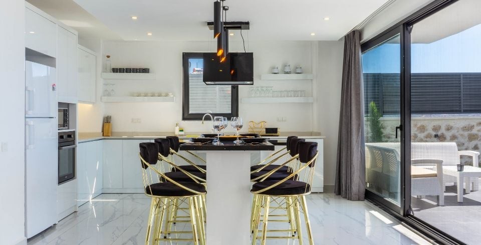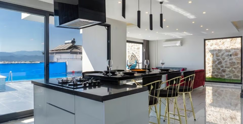 Mutfak: Villamızın mutfağında buzdolabı bulaşık makinası, çamaşır makinası, 4'lü ocak, ketıl, mikro dalga fırın, filtre kahve makinası yemek takımı bulunmaktadır.