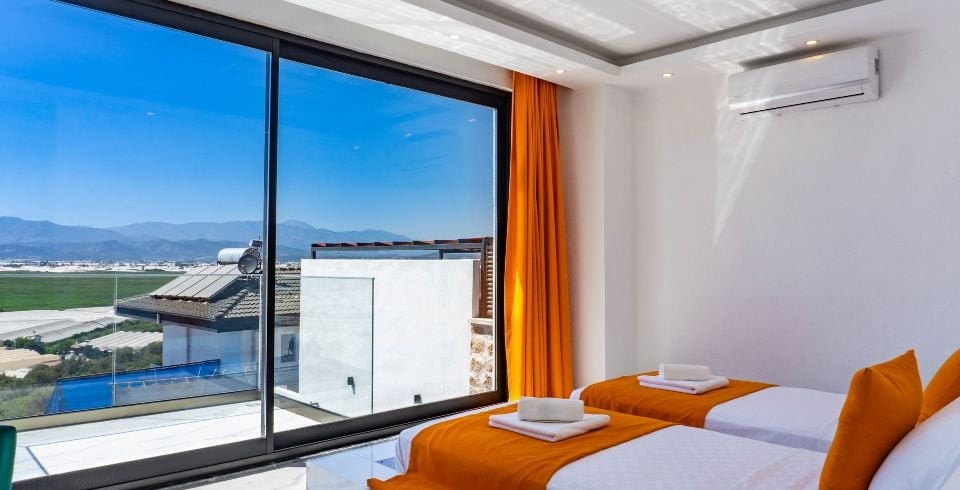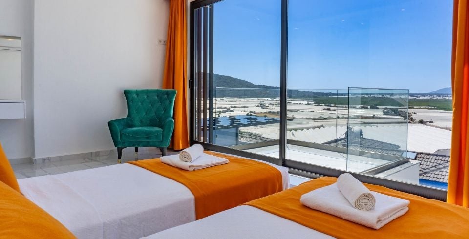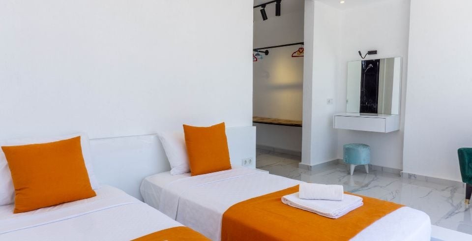 2. Yatak Odası: 2 adet tek kişilik klima, komodin, elbise dolabı, makyaj masası, banyo ve tuvalet bulunmaktadır.
