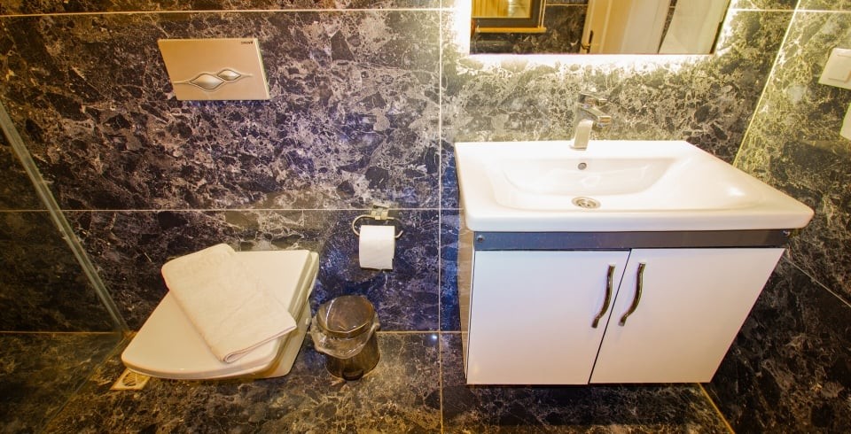 1. Yatak Odası : 1 adet çift kişilik yatak, klima, komodin, makyaj masası, banyo ve lavabo bulunmaktadır.
