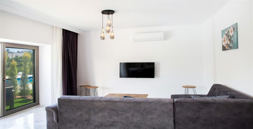 Salon : Salon içerisinde oturma grubu, TV, klima, sehpa, bulunmaktadır.
