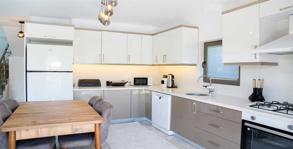 Mutfak : Amerikan mutfakta, buzdolabı, bulaşık makinesi, fırın ve ocak gibi her şey elinizin altında.