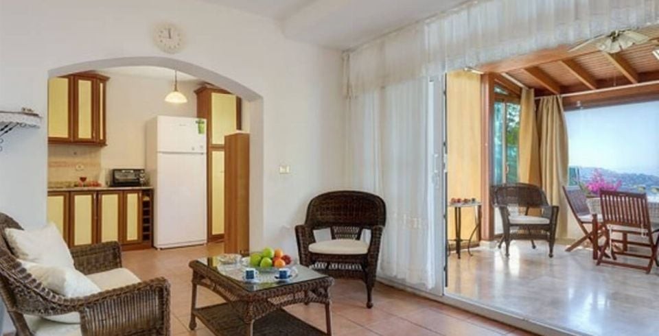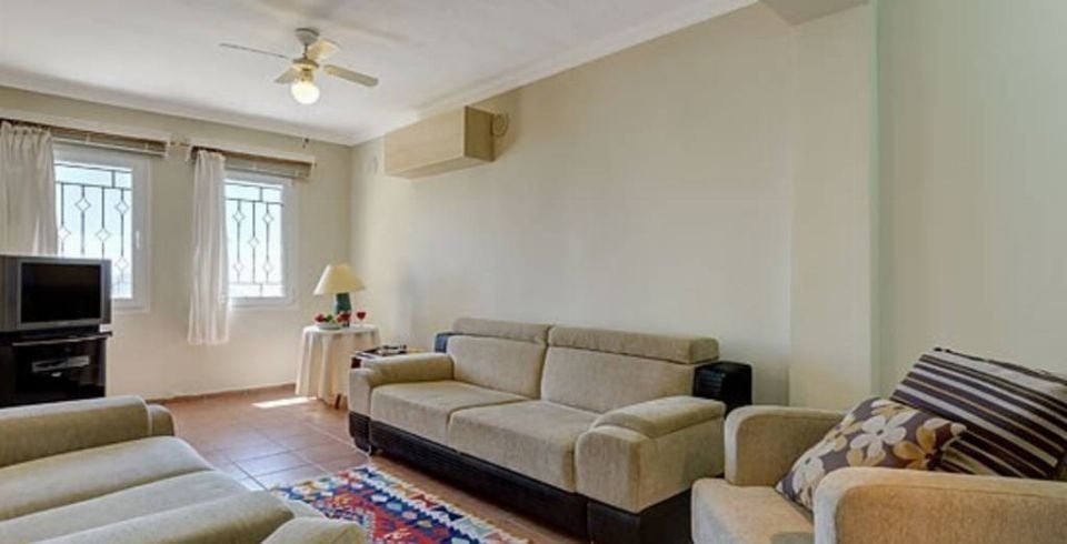 Salon : Villamızın Salonunda oturma grubu, TV, uydu, internet, klima, ve havuz terasına çıkış yapılabilmektedir.