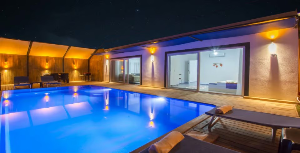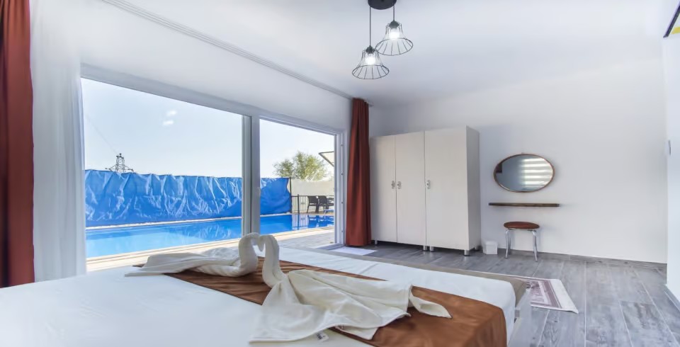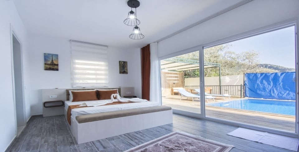 Villamız, 4 kişilik konaklama kapasitesine sahiptir. Toplamda 2 yatak odası bulunan villamızın bir odasında çift kişilik yatak, diğer odasında ise iki adet tek kişilik yatak yer almaktadır. Ayrıca, 2 adet banyo ve özel yüzme havuzu bulunmaktadır.