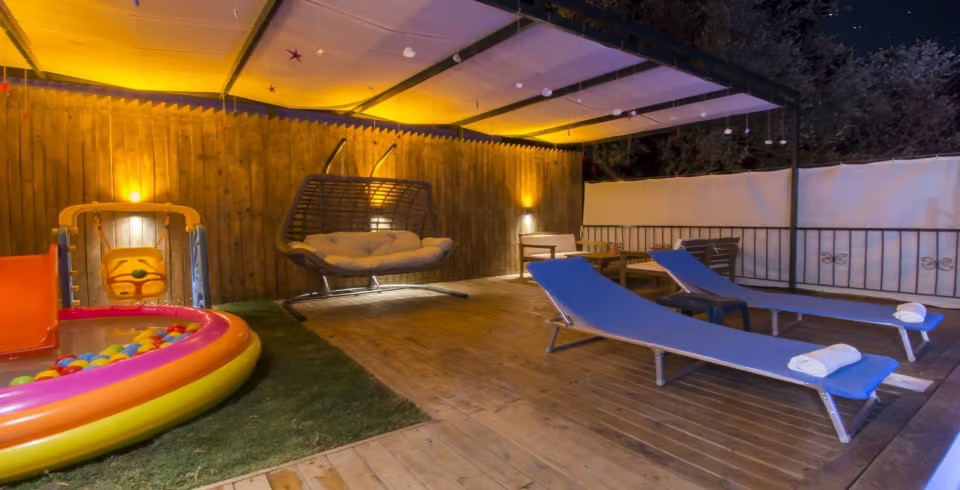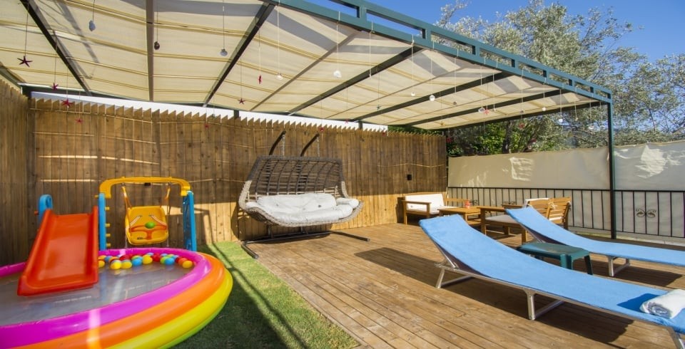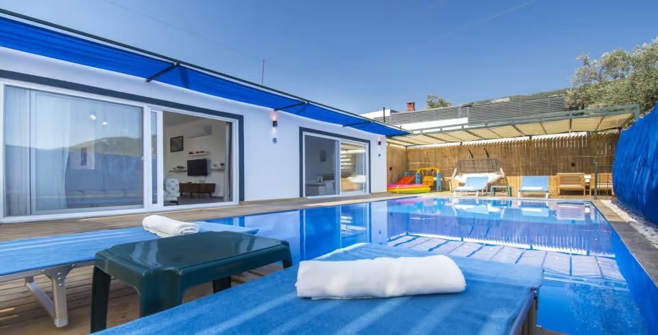 Özellikle muhafazakâr ailelerin tercih ettiği bu villamızda, korunaklı havuz alanı sayesinde dilediğinizce güneşlenip yüzmenin keyfini çıkarabilirsiniz. Havuz terasında sevdiklerinizle birlikte vakit geçirebileceğiniz oturma alanları mevcuttur. Çocuklarınız için keyifli vakitler sunan geniş bir bahçe ve salıncak da villamızda yer almaktadır.