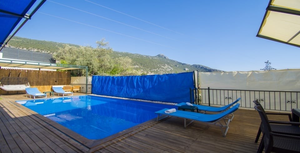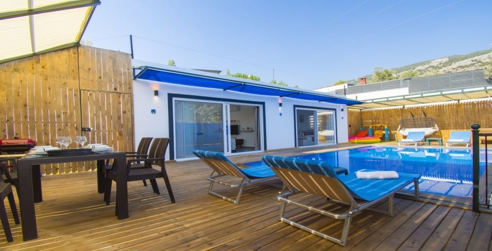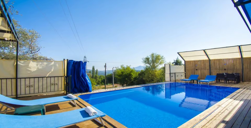 Havuz ve Bahçe : Özel yüzme havuzu bulunan villamızın havuz terasında şemsiye, şezlong, barbekü, pergola, oturma alanı, yemek masası ve sandalyeler bulunmaktadır.
