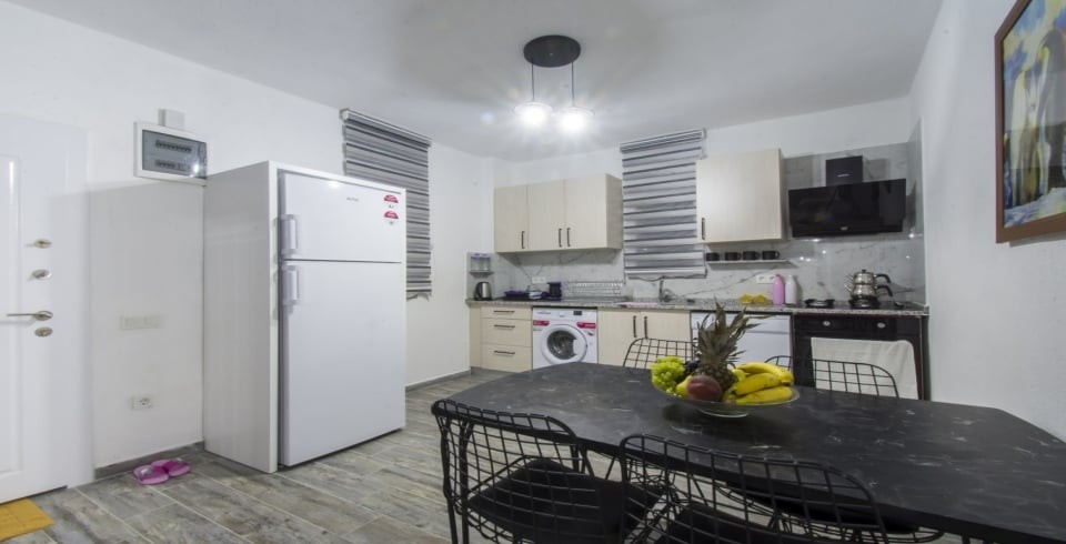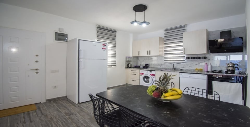 Mutfak : Amerikan açık mutfak ve salona sahip villamızın mutfağında buzdolabı, bulaşık makinası, ankastre ocak, fırın, mikrodalga, 4'lü ankastre ocak, kettle, çamaşır makinası, yemek masası ve temel mutfak araç ve gereçleri bulunmaktadır.