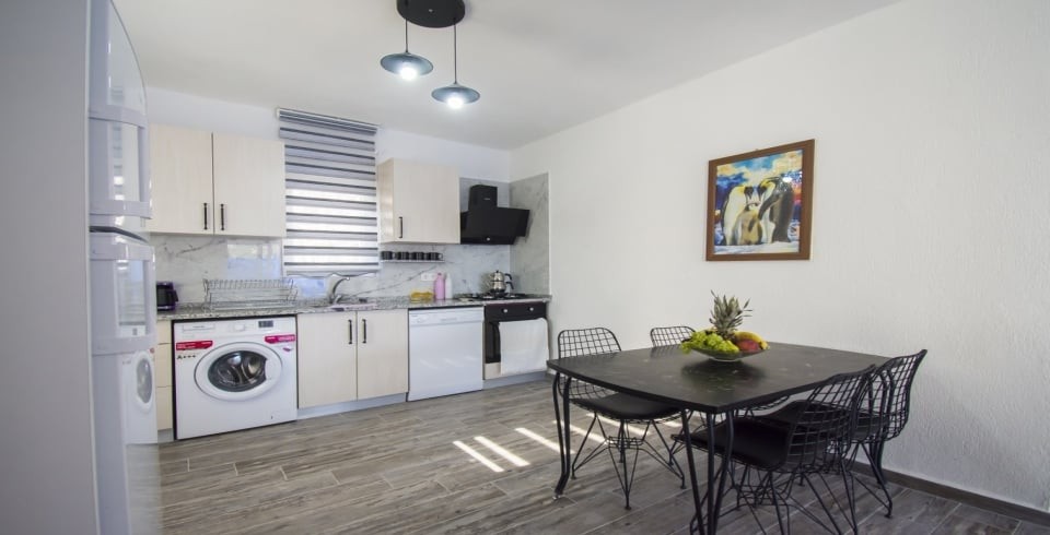 Amerikan mutfak konseptiyle tasarlanan mutfağımızda; ocak, kettle, fırın gibi temel mutfak ekipmanları eksiksiz şekilde yer almakta olup, misafirlerimizin keyifle yemek hazırlayabileceği donanıma sahiptir.