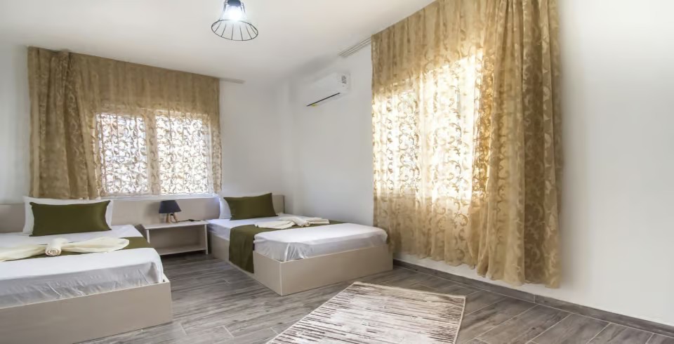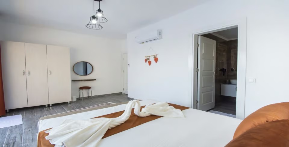 2. Yatak Odası : 2 adet tek kişilik yatak, klima, elbise dolabı, makyaj masası, komodin, banyo ve WC bulunmaktadır.