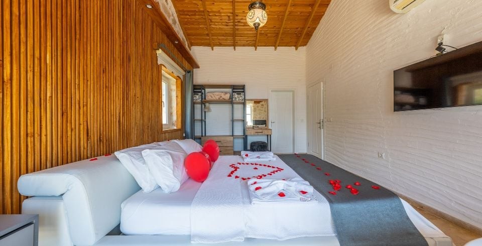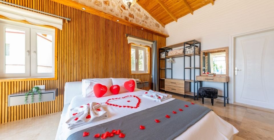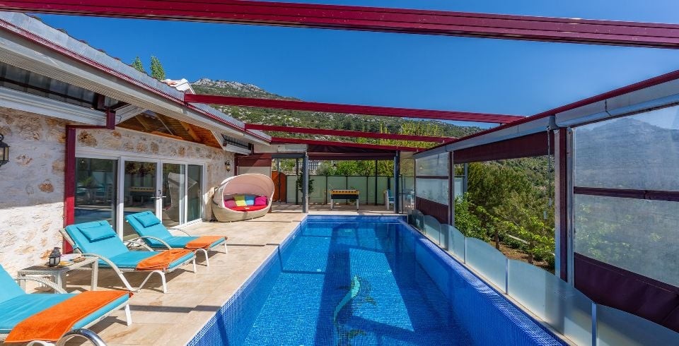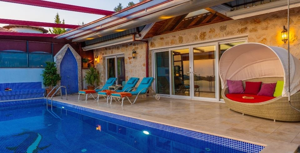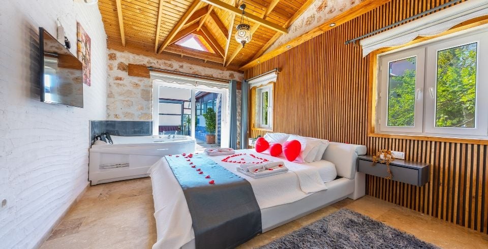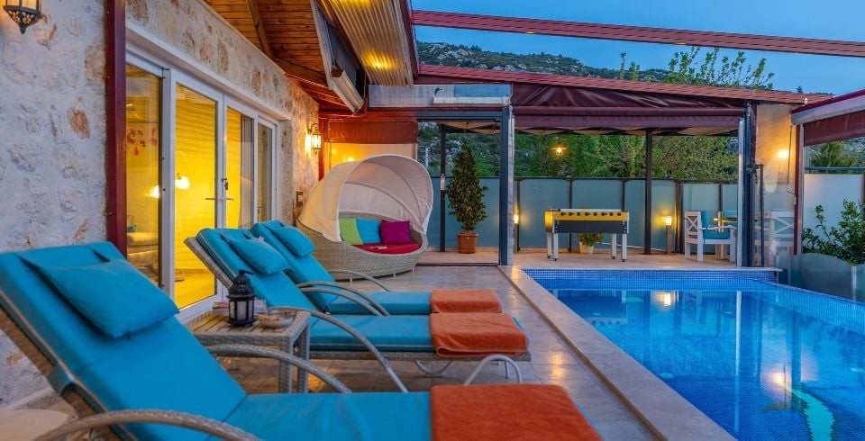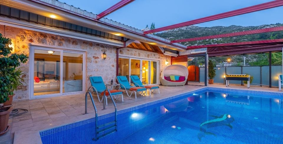 Kalkan İslamlar ’da 2 yatak odalı ve 4 kişilik konaklama kapasitesine sahip konumundan ve özel havuzunun korunaklı olması bakımından balayı çiftlerine ve muhafazakar çekirdek ailelere hitap eden kiralık Villa Sude yeni misafirlerini bekliyor. Gözlerden uzak, dilediğiniz gibi, yemyeşil doğa içinde sessiz ve huzurlu bir tatil geçirmek isterseniz Villa Sude tam da size göre. Size özel yüzme havuzunun tadını mis gibi hava ve muhteşem güneş eşliğinde çıkarırken kendiniz için ayırdığınız bu kısıtlı zamanı gönlünüze göre değerlendirmenin mutluluğunu yaşayacaksınız.