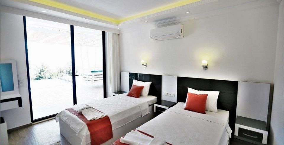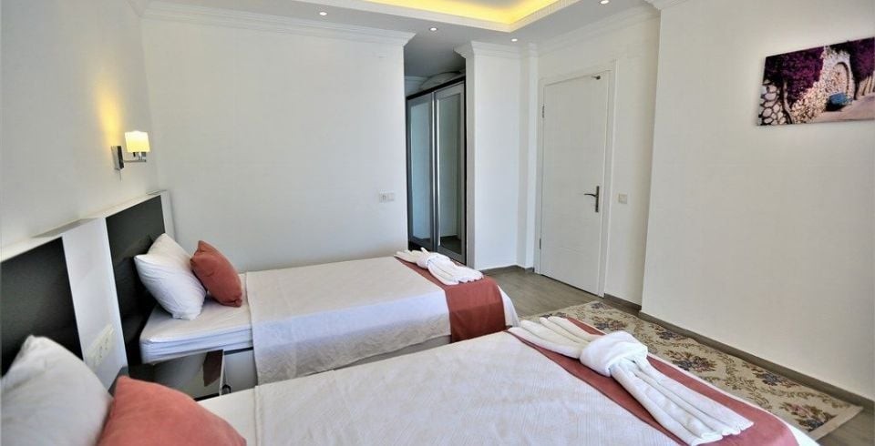 3. Yatak Odası : 2 adet tek kişilik yatak, klima, elbise dolabı, makyaj masası, komodin, banyo ve lavabo bulunmaktadır.