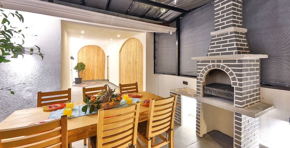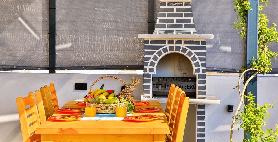 Bahçe : Bahçe içerisinde özel yüzme havuzu, 4 adet şezlong, 4 kişilik yemek masası, salıncak , barbekü, güneş şemsiyesi bulunmaktadır