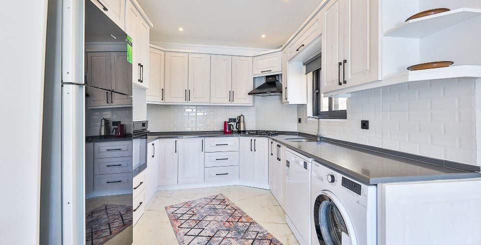 Mutfak : Amerikan açık mutfak, bulaşık makinası, buzdolabı, çamaşır makinası, su ısıtıcısı, fırın, 4'lü ocak seti, yemek masası ve mutfak araç gerekleri 4 kişilik olarak mevcuttur.